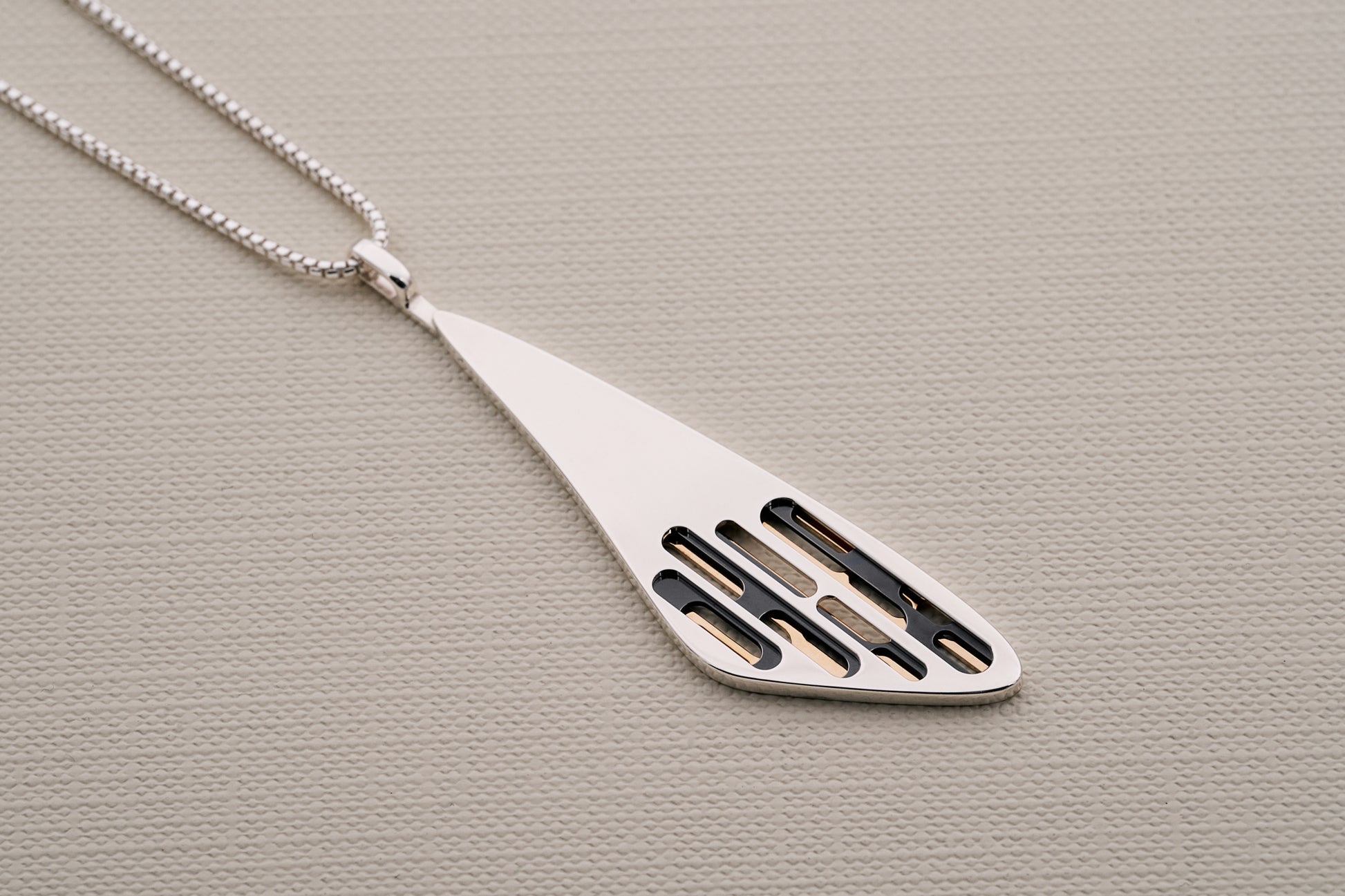 The Wing | Contemporary Art Jewelry | Pendant Necklace | Silver, Gold & Niobium (Black)